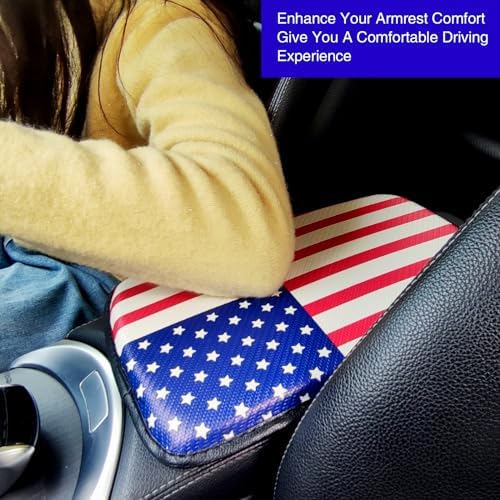 Hawyet 1 PC American Flag Car Center Console Pad, 11.8In x 8.2In x 1.1In PU Leather Vehicle Armrest Protector, Four-Season Universal Waterproof Armrest Box Cushion Accessories for SUV, Truck (Red)