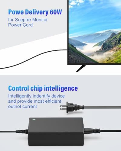 12V Power Supply Cord for Sceptre AOC Dell Monitor Power Cable, 12V 5A AC/DC Adapter Charger Sceptre 19″ 20″ 22″ 24″ 25″ 27″ 30″ 32″ Series LED Supersonic Monitor Charger
