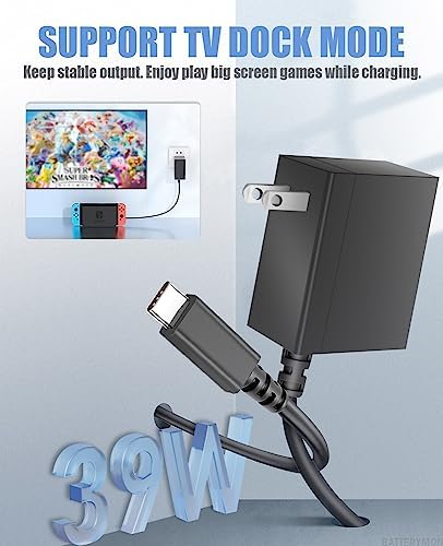 15V 2.6A AC Adapter Replacement for Nin-tendo Switch Game Console Switch Lite, Switch Dock Switch Pro Controller, Wall Charger with 5ft Type C Cable (Support TV Mode/Dock Station)