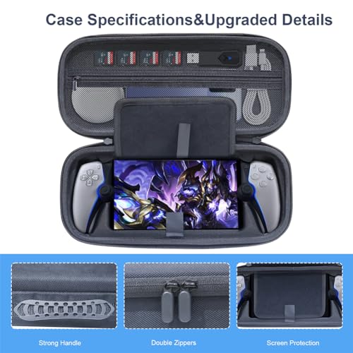 🎮【Premium Material】EVA material is used to effectively shockproof. The thickened grooves inside the hard case provide separate compartments, ensuring that your items stay neatly organized. Sturdy and durable handheld bag design for PS Portal.Package includes: 1 x 9H Hardness Tempered Glass Screen Protector,1 x PS5 Portal Case,1 x TPU Protective Case Cover.
