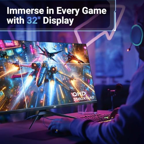32inch Gaming Monitor, 165Hz IPS Display, QHD 2560 x 1440p Monitor, 120% sRGB, Freesync & G-sync Compatible, 5ms, HDR Support, Low Blue Light, HDMI, DP,USB, Tilt