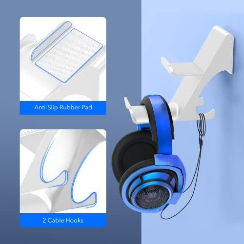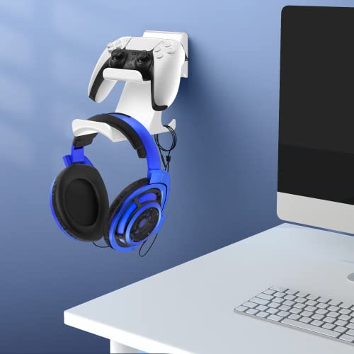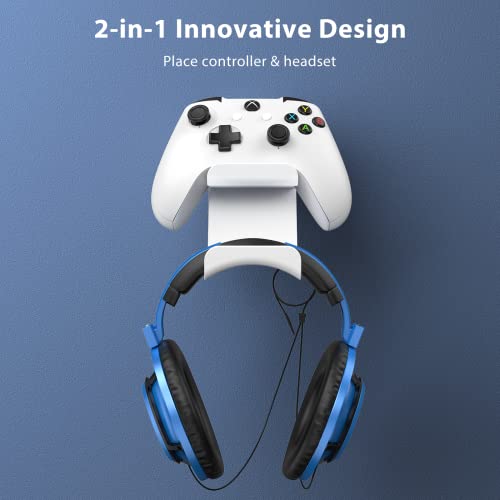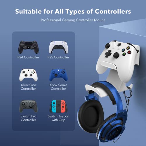 6amLifestyle Controller and Headphone Wall Mount Holder Stand with Cord Hanger for PS5 PS4 Xbox One Switch Pro Gamepad Controller Hook Strong Adhesive/Screws, White