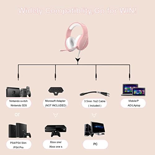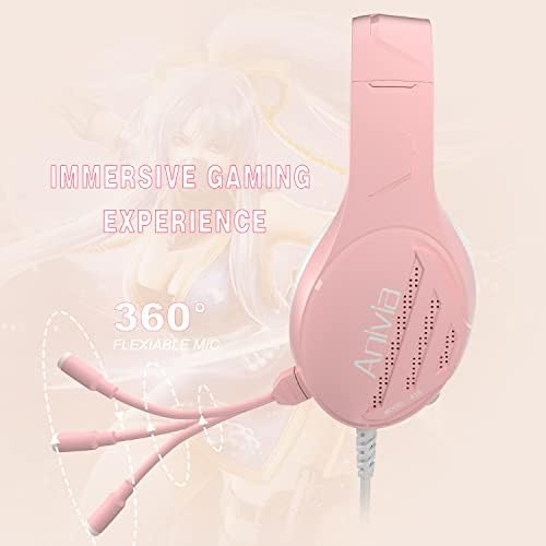 Anivia Computer Headsets Over Ear Stereo Surround Sound Wired Headphones Wired Gaming Headset with Mic for PC MAC PS4 PS5 Xbox One, Pink