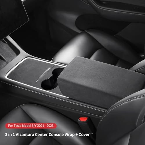 Armrest Cover Center Console Armrest Box Case Protector Lid Pad + Center Console Wrap Kit for Tesla Model 3 Model Y 2017-2020 Alcantara Suede Fabric Interior Decoration