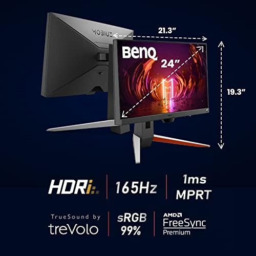 BenQ MOBIUZ EX240 Gaming Monitor 24″ FHD 1080p 165Hz 1ms | IPS | HDRi | sRGB | Color Optimizer | Black eQualizer | Freesync | Eye-Care | Height, Swivel & Tilt | DisplayPort | HDMI | Built-In Speakers