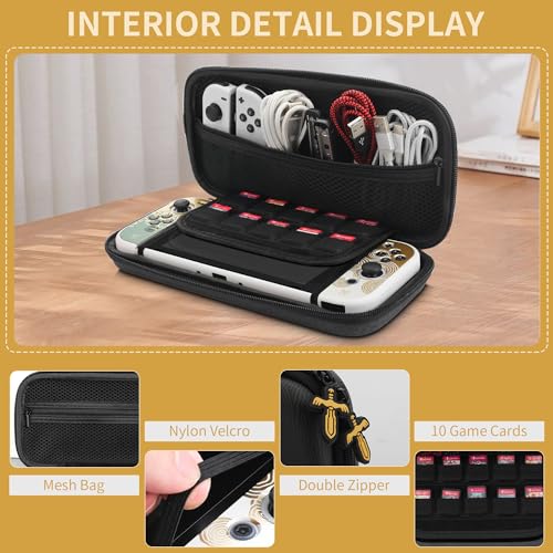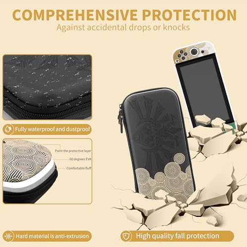 Black Carrying Case for Nintendo Switch OLED, Accessories Kit of Zelda with Portable Switch OLED Console Storage Bag, Protective Skin Cover, HD Screen Protector, 2 Thumb Caps & Wrist Strap