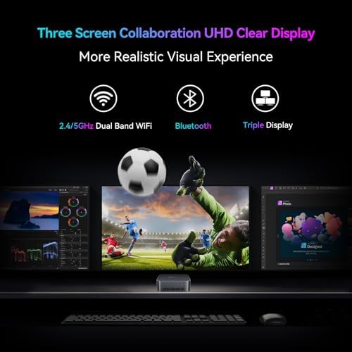 Triple Your Productivity with Triple Display – MP80 Mini PC supports 4K UHD high-definition output, 4K UHD display resolution of 4096 x 2160@60Hz, and 1200MHz Dynamic Frequency, providing you with theatre-like visual experience. With three HDMI ports on Blackview MP80, you can connect three screens simultaneously, creating a more expansive workspace and experience ultimate productivity and entertainment.