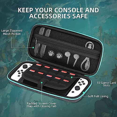 ♥【Spacious Storage】: With independent compartments on both sides, our case offers ample storage space for your nintendo switch and accessories. It also has 10 built-in game card slots to keep your game cards organized and easily accessible.