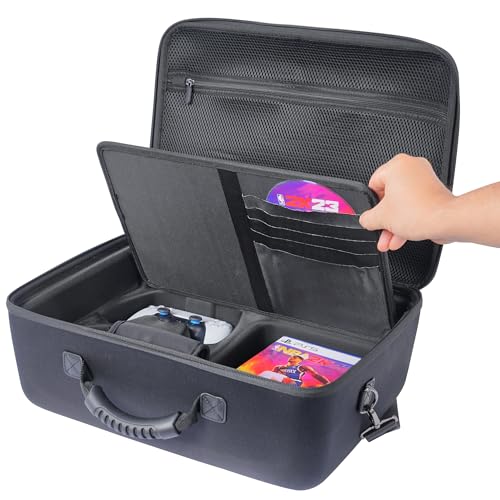 Carrying Case for Playstation 5 Console, Travel Case Compatible with PS5, DualSense Controllers, Base, Games and Accessories(Black)