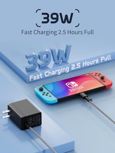 【Compatible with USB-C devices】39W charger is compatible with Nintendo Switch/Lite/OLED/Switch Dock Station/Switch controller, and more support Samsung S8/S9, Steam Deck and other devices that support typec port.