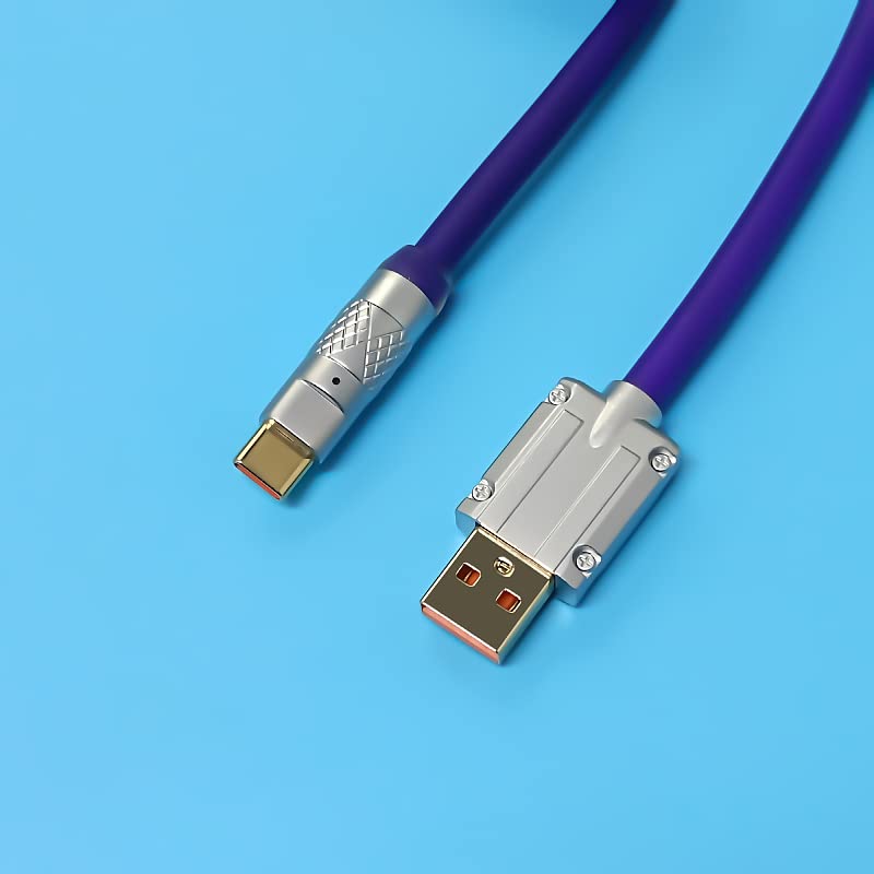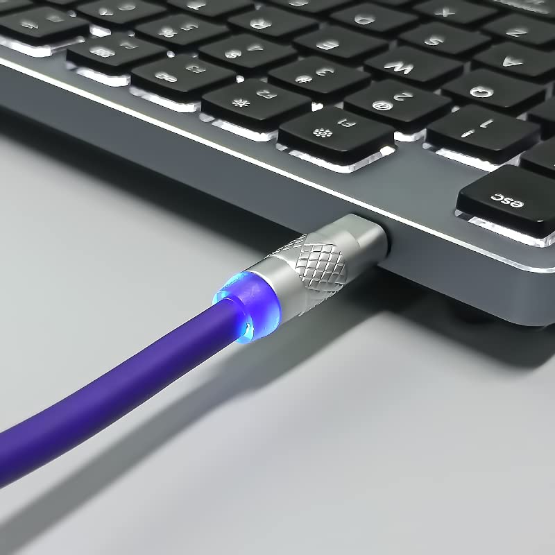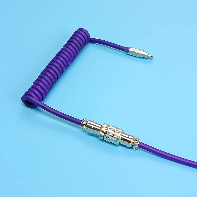 Custom Coiled Type-C to USB A Mechanical Gaming Keyboard Space Cable with Detachable Aviator Connector, Suitable for Tablet/Phone/Other USB 2.0 Devices (Purple)