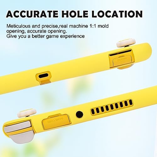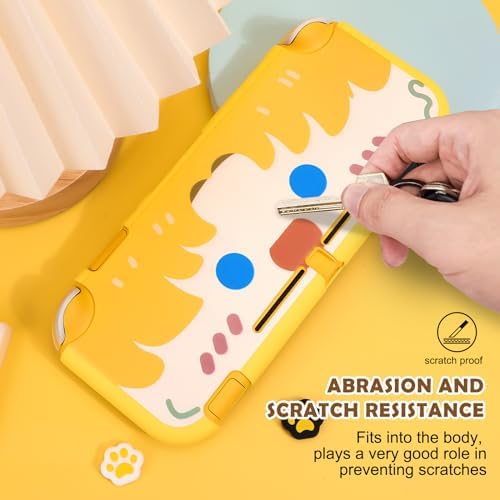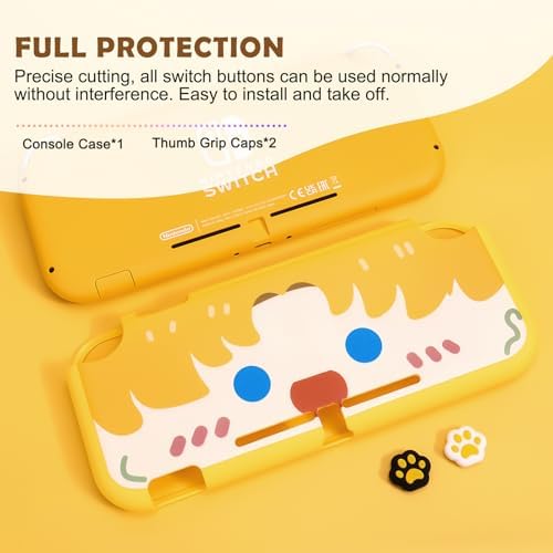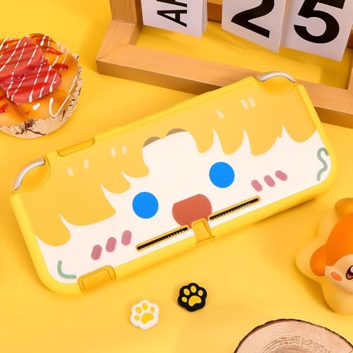DLseego Grip Case Controller for Switch Lite Console, Durable Anti-Slip Shock-Absorption Protective TPU Soft Case and Joycon Controllers with 2 PCS Comfortable Cat Thumb Grips Caps-Yellow Cute Boy