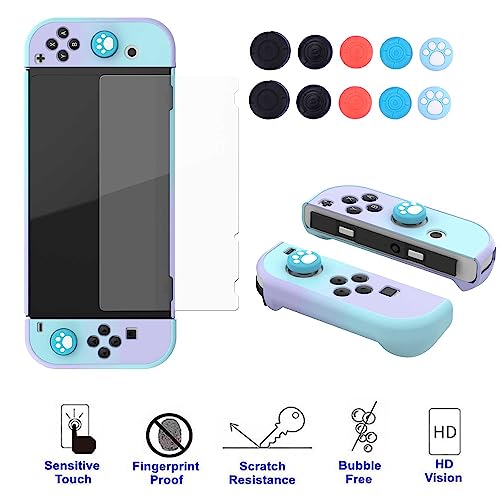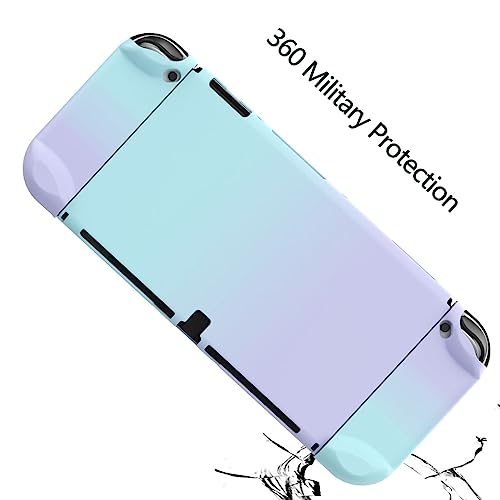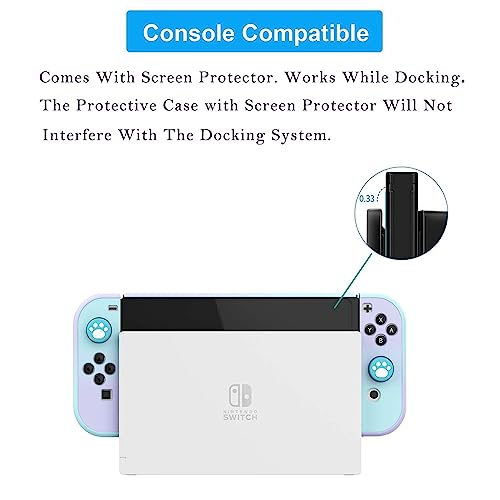 Dockable Case for Nintendo Switch OLED – [9 FT Military Grade Drop Protection] [with Tempered Glass Screen Protector and Thumb Grips] Protective Cover for Nintendo Switch OLED – Purple Blue