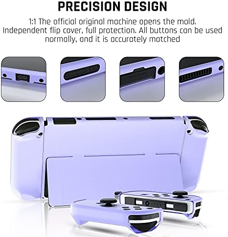 Dockable Purple Case for Nintendo Switch OLED Model 2021 Skin, Accessories Cover for Switch OLED Console & Joycon with Screen Protector and 4 Thumb Grip Caps – Full Protection by Flip Shell