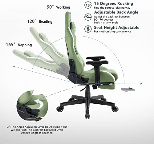 Dowinx Gaming Chair Breathable Fabric Office Chair with Pocket Spring Cushion and 4D Armrest, High Back Ergonomic Computer Chair with Massage Lumbar Support Task Chair with Footrest Green