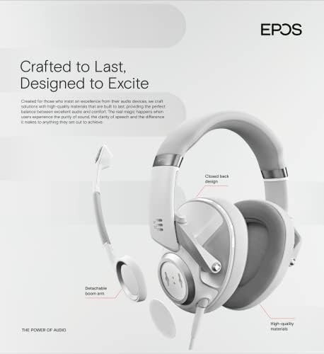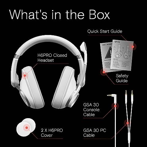 EPOS Gaming H6Pro – Closed Acoustic Gaming Headset with Mic – Over-Ear Headset – Lightweight – Lift-to-Mute – Xbox Headset – PS4 Headset – PS5 Headset – PC/Windows Headset – Gaming Accessories -White