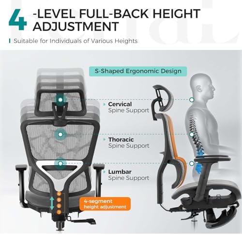 Ergonomic Office Chair, High Back Mesh Office Chair with Adaptative Lumbar Support, 3D Adjustable Armrest & Seat Depth, Rolling Desk Chair with Tilt Function, Adjustable Headrest (Silver Gray)