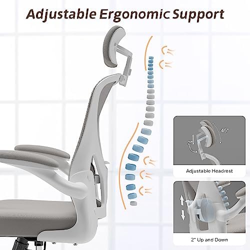 Ergonomic Office Chair Home Desk Office Chair with Flip-Armrest & Cushion for Lumbar Support, high Back Computer Chair with Thickened Cushion Desk Chairs Gray