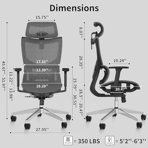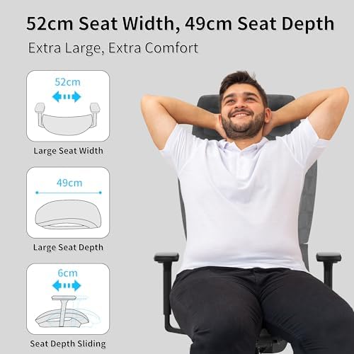 Ergonomic Office Chair with 3D Armrest, Big and Tall Computer Desk Chair with Adjustable Headrest, Seat Depth, Lumbar Support, Home Office Gaming Chair Dark Grey