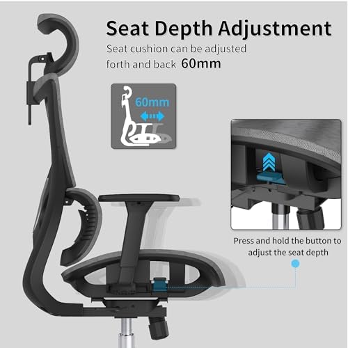 【Adjustable Seat Depth】Seat cushion of the home desk chair can be adjusted forth and back 60mm to find the most suitable sitting position according to height and thigh length, reduces the pressure on the hip and thighs, offers lasting comfort all day.
