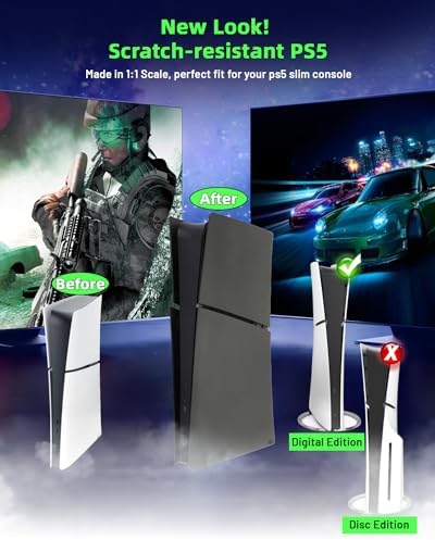 Perfect Fit: This New PS5 Slim Protective Shell is specifically designed for the PS5 Slim machine, guaranteeing a perfect fit. It matches the dimensions and shape of the original shell, without compromising the performance or functionality of your console. Note the face plates only fit for PS5 Slim digital edition.