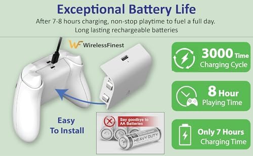 Easy setup, just insert this controller battery pack and back cover are it will securely attached to ensure fits your controller. The rechargeable battery pack is designed exclusively for the original Xbox series S/X controller. Just insert it to your controller to use directly.