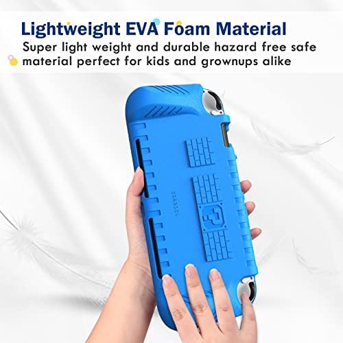 Fintie Kids Case for Nintendo Switch OLED Model 2021 with 2 Game Card Slots – [Kids Friendly] Ultralight Shockproof Protective Cover, Ergonomic Grip Case for Switch OLED Model Console 7.0″ (Blue)