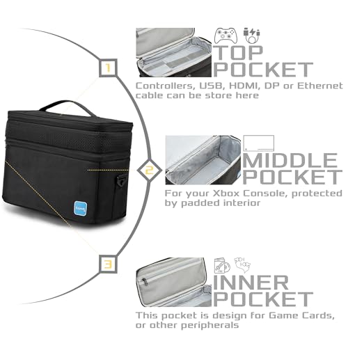 Game Console Carrying Case Compatible with Xbox Series X, Portable Travel Storage Bag Comes with Protective, Enough Space for Storing Game Controllers, Cables, and Other Accessories.(Black)