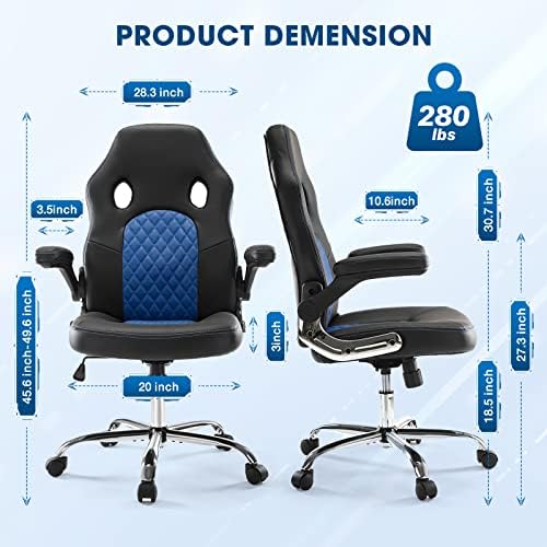 Gaming Chair, Home Office Computer Chair PU Leather Ergonomic Racing Desk Chair Adjustable Height Mid Back Executive Task Chair with Lumbar Support and Flip Up Armrest, Rocking Swivel Comfty Cushion