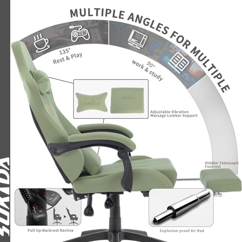 Gaming Chair with Footrest Ergonomic Computer Chair Massage Lumbar Cushion, Racing Video Game Chair Adjustable Rocker Recliner Executive Office Desk Chair Pu Leather for Adults