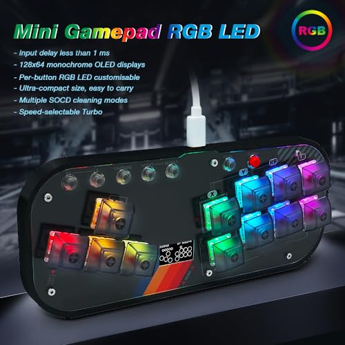 Gaming Keypad, Mini Gamepad Leverless Controller Arcade Stick – Supports SOCD & OLED Display, Mechanical Switch Keys, Suitable for PC/PS3/PS4/Switch/Steam with TURBO