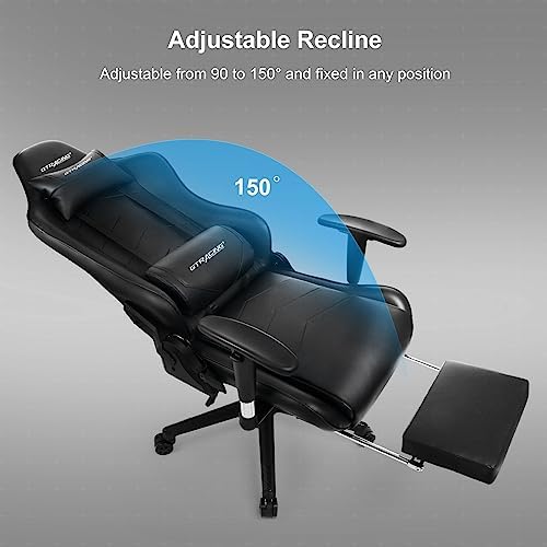 GTRACING Gaming Chair with Footrest Big and Tall Gamer Chair Office Executive Chair Heavy Duty Adjustable Recliner with Headrest Lumbar Support Cushion Desk Chair (Black)
