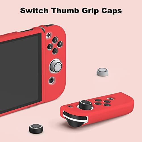 JINGDU Protective Case Compatible with Switch OLED, Dockable TPU Cover Accessories for Switch OLED Console and Grip Joy-Con, The Switch Protector with 4 Thumb Grip Caps,Red