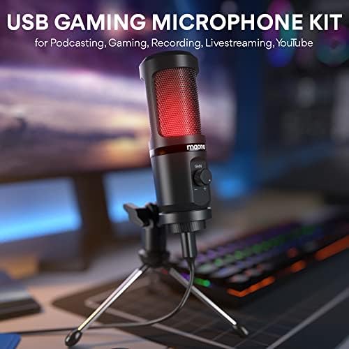 MAONO USB Gaming Microphone for PC, Computer Condenser Mic with Gain Knob, RGB Light, Tripod Stand for Recording, Podcasting, Streaming, Compatible with PS5 PS4 Mac Laptop Desktop (PM461TR RGB)