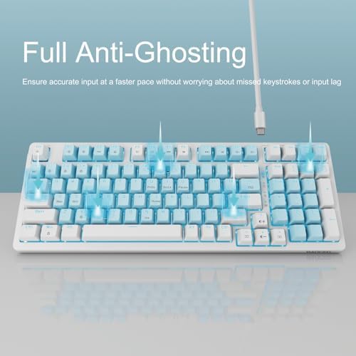 【Full 98 Keys Anti-ghosting】Equipped with anti-ghosting technology, the 98-key mechanical keyboard ensures that every keystroke is registered accurately, even when multiple keys are pressed simultaneously. This can be especially useful for gamers who need to execute complex commands quickly and accurately.