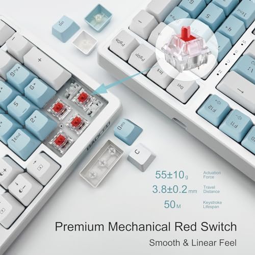 【Red Switch–Smooth and Linear feel】Mechanical red switches require a low actuation force, which means they can be pressed quickly and easily. This can be especially useful for gamers who need to press keys rapidly. They also gives you a smooth and linear feel when pressed, which can make typing or gaming more comfortable and precise.