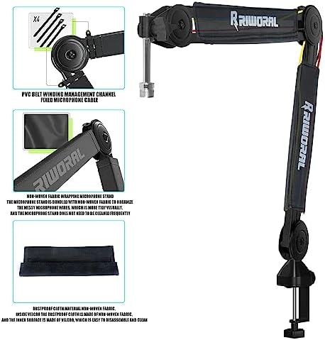 Mic Stand Desk : With Built-In Spring And Supplied Cable Management Will Keep Your Mic Cables Organized Neatly Out Of The Way Keep You Free From Messy Cables For A Cleaner Experience.A Dustproof Cloth Made Of Non-woven Can Better Cover The Messy Layout Of Audio Cables, And Better Experience The Working Environment.