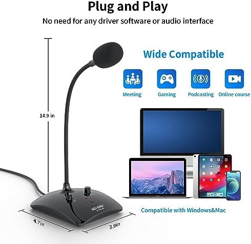 🎤【Plug and Play, One Button to Mute】Just plug in the Laptop Microphone and use it! No software installation is required. One button to turn on or off Compatible with all operating systems – Mac OS X Windows Linux – and every PC brand (Apple Asus HP, etc.) There is a mute button on the base of the condenser microphone, you can stop the recording time and check it at any time, and it is equipped with an LED indicator light reminder working status. (LED red on: working state; LED off: mute state)!