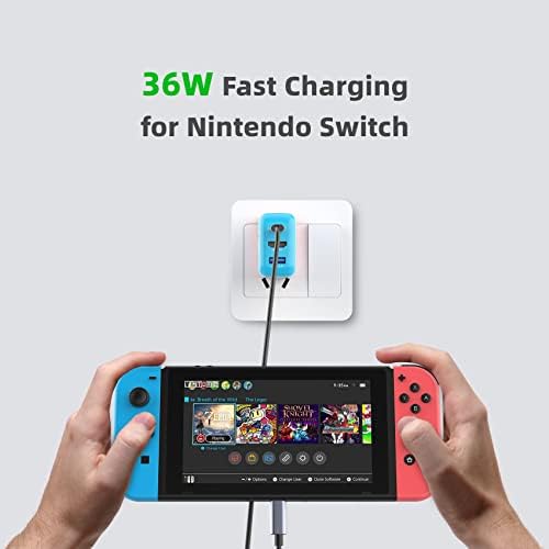 【With USB3.1 Type-C PD Fast Charging Port】The switch charger adapter has a USB3.1 Type-C PD fast charging port, its max watt is 31W. It can supports 5V~3A,9V~3A,12V~2.58A,15V~2.06A,20V~1.55A fast charging.Although the maximum output power supported by the official charging head of the switch is 15V2.6A, the actual input power for charging the switch is only about 15W.