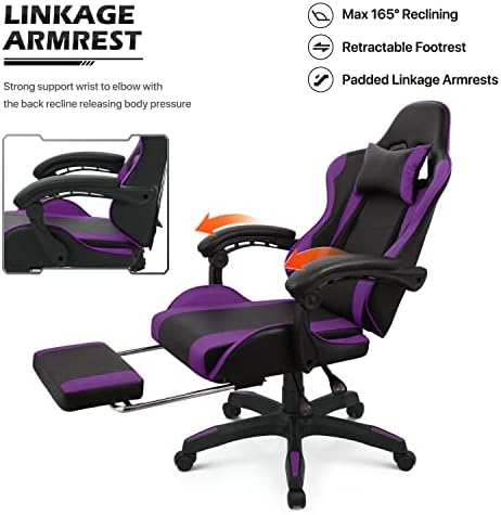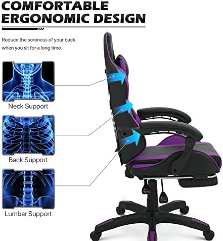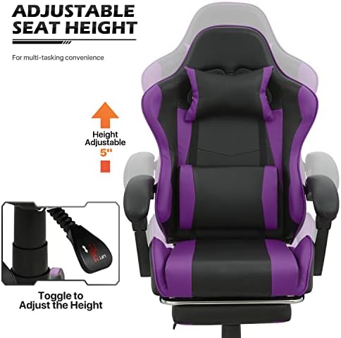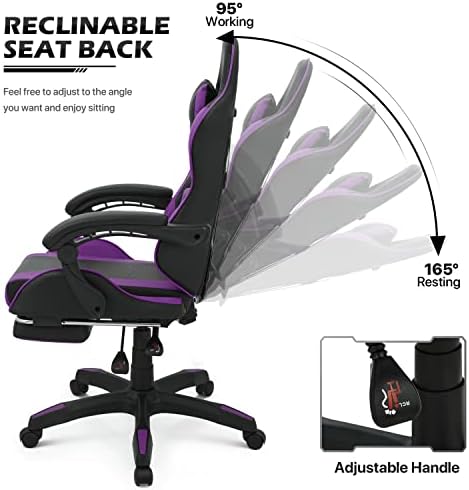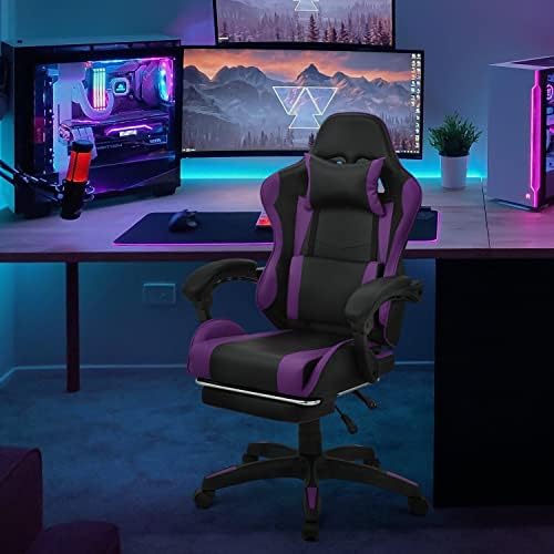 MoNiBloom Gaming Chair Office Chair Leather High Back Computer Chair with Headrest and Lumbar Support 360° Swivel Ergonomic Footrest Adjustable Gamer Chair for Adult Teen Home Office Using, Purple