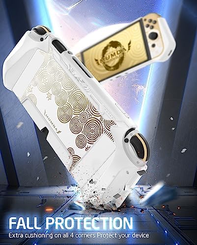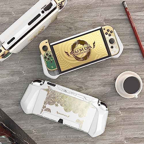 Mumba Dockable Protective Case for Nintendo Switch OLED 7 Inch 2021 Model with Blade Series TPU Grip and Anti-Scratch Material in White/Gold Color