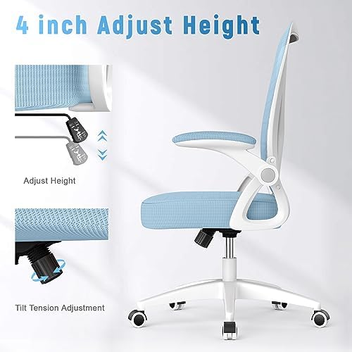 naspaluro Ergonomic Office Chair, Mid Back Desk Chair with Adjustable Height, Swivel Chair with Flip-Up Arms and Lumbar Support, Breathable Mesh Computer Chair for Home/Study/Working, Blue