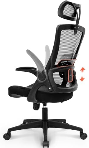 NEO CHAIR Office High Back Mesh Headrest Adjustable Height and Ergonomic Design Home Office Computer Desk Executive Lumbar Support Padded Flip-up Armrest Swivel Chair (Black)