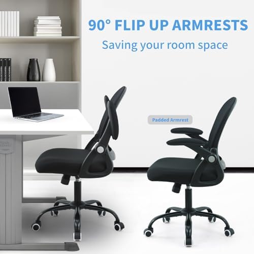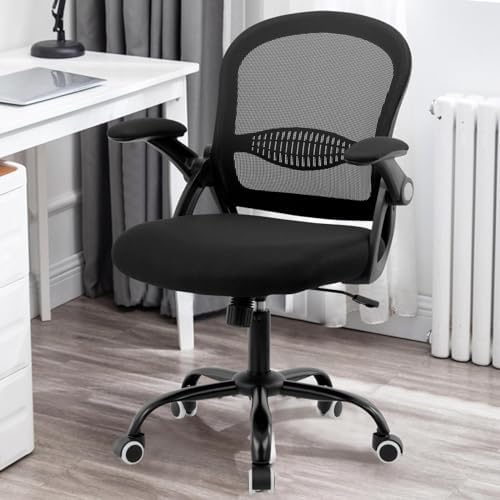 Office Chair Desk Chair, Ergonomic Home Office Task Chairs, Executive Task Chair, Adjustable MidBack Computer Gaming Chair, Flip-up Armrests 360° Swivel Breathable Mesh Back Chair, Black