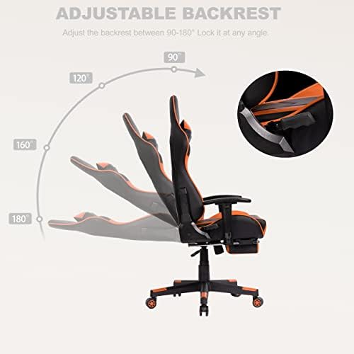 OHAHO Gaming Chair Racing Style Office Chair Adjustable Massage Lumbar Cushion Swivel Rocker Recliner High Back Ergonomic Computer Desk Chair with Retractable Arms and Footrest (Black/Orange)