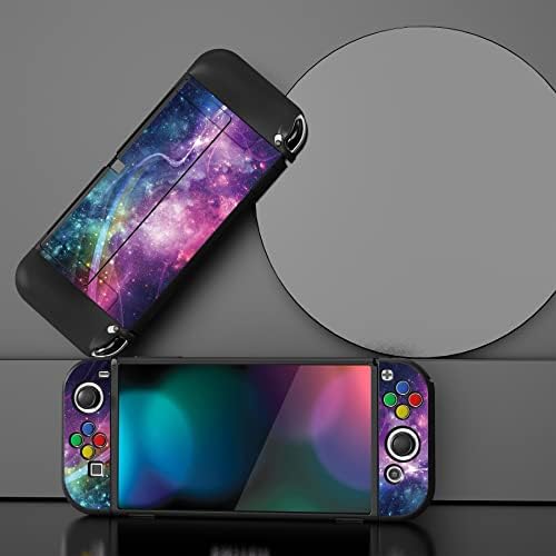 PlayVital ZealProtect Soft Protective Case for Nintendo Switch OLED, Flexible Protector Joycon Grip Cover for Nintendo Switch OLED with Thumb Grip Caps & ABXY Direction Button Caps – Purple Galaxy