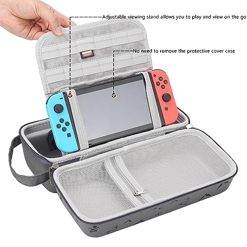 Portable Carry Case for Nintendo Switch/Switch OLED – Built-in Stand Fit for Switch AC Adapter, Switch Dock / Pro Controller Accessories, Zelda Theme Switch Travel Case with Removable Shoulder Strap