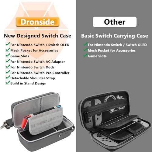 The Dronside switch carrying case has a completely new design compared to traditional switch case. This Zelda theme switch case has a larger mesh pocket to store the nintendo switch accessories include extra joy-con grip, customized slots to store the switch’s AC Charging Adapter and Dock / Pro Controller, and the switch console can be easily stored without removing the protective cover.