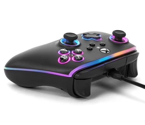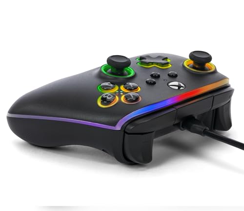 Illuminate the possibilities with the PowerA Advantage Wired Controller for Xbox Series X|S with Lumectra. Licensed by Xbox, this controller features Multi-Zone RGB with 4 individual lighting zones and 3 modes for thousands of color combinations. A Built-in IR transmitter allows you to control compatible Lumectra Zone RGB lighting accessories directly from your gamepad. Plus, additional features such as two mappable Advanced Gaming Buttons, 3-Way Trigger Locks, Impulse Triggers, Dual Rumble Motors, precision-tuned analog sticks, anti-friction rings for smooth motion and an ergonomic design. Sit back in comfort with the included extra-long 10ft USB-C cable. Works great on Windows 10/11. 2-year limited warranty.*Compatibility varies by title.