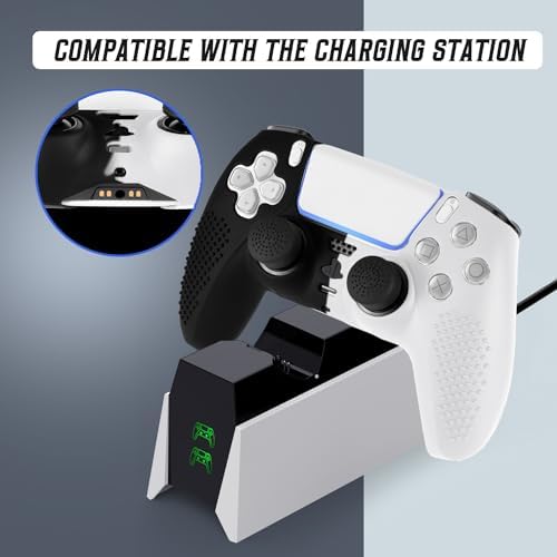 PS5 Controller Skin, Anti-Slip Soft Silicone Protective Cover Case for Playstation 5 Dualsense Controller Grip Accessories, 2 Pack with 8 x Thumb Grip Caps (Black Mix White)
